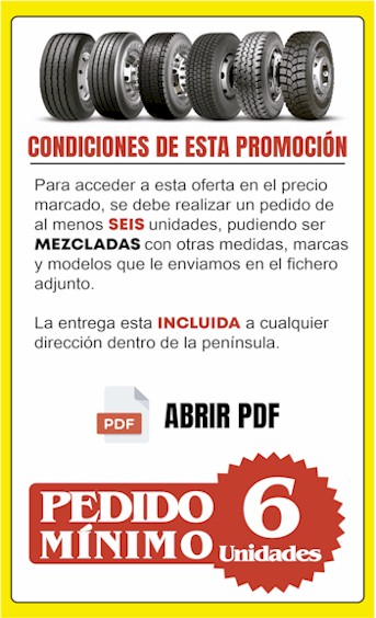 Portes pagados para pedidos de 2 o más neumáticos para cualquier punto de la Península; para compras de 1 neumático el porte sería 8 € más iva. Para otros tipo de envíos, o para las Islas Baleares consulten portes a su agente comercial o llamando al 673 188 652.